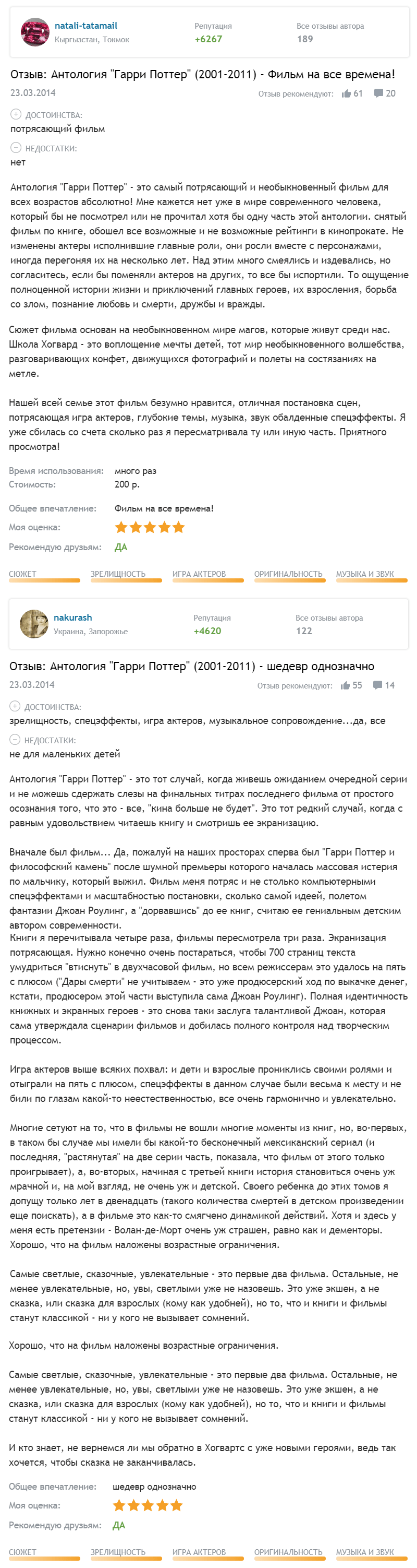 «Гарри Поттер» — Отзывы и Рецензии Зрителей о Всех Фильмах Кинофраншизы